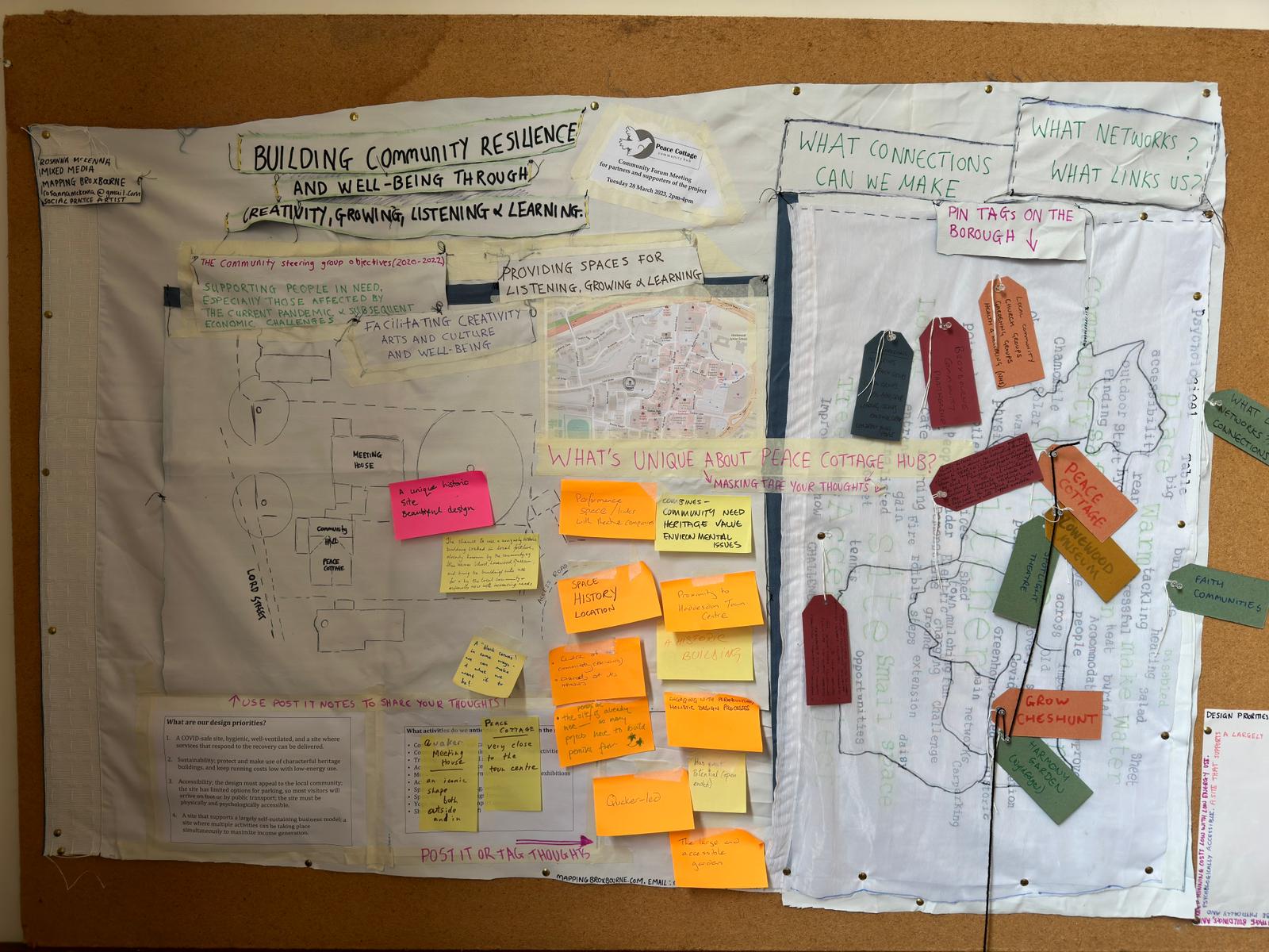 Zoe was at the time developing some conversations & community forums to be held at the Peace Cottage and at the start of 2023 I suggested the possibility of creating a conversation piece for the first forum which unfortunately I new I couldn’t make as I was still in wales at this point .